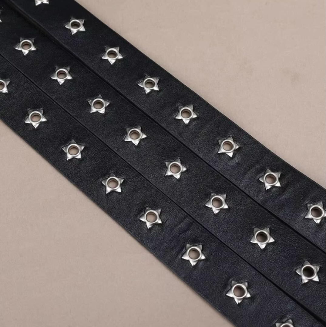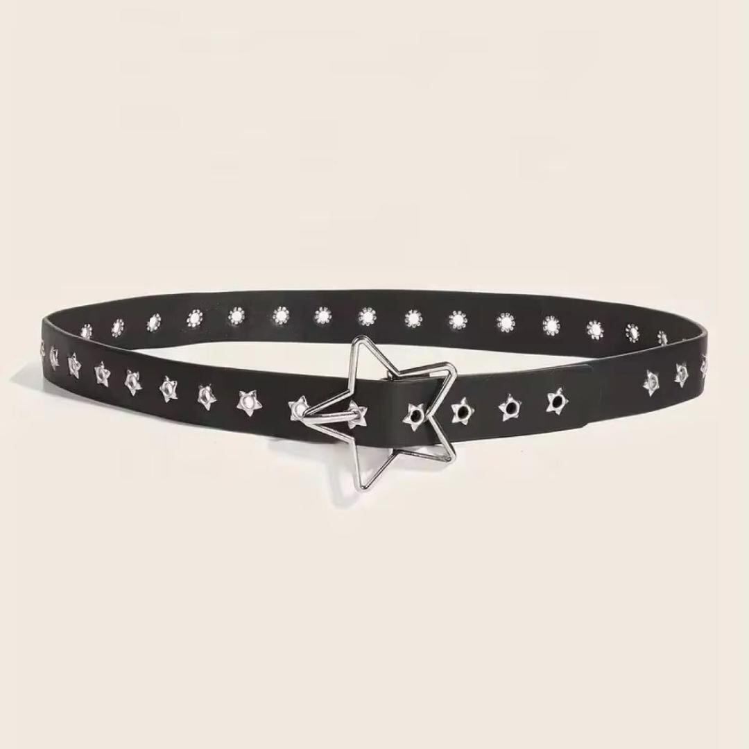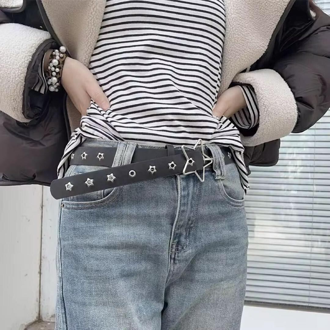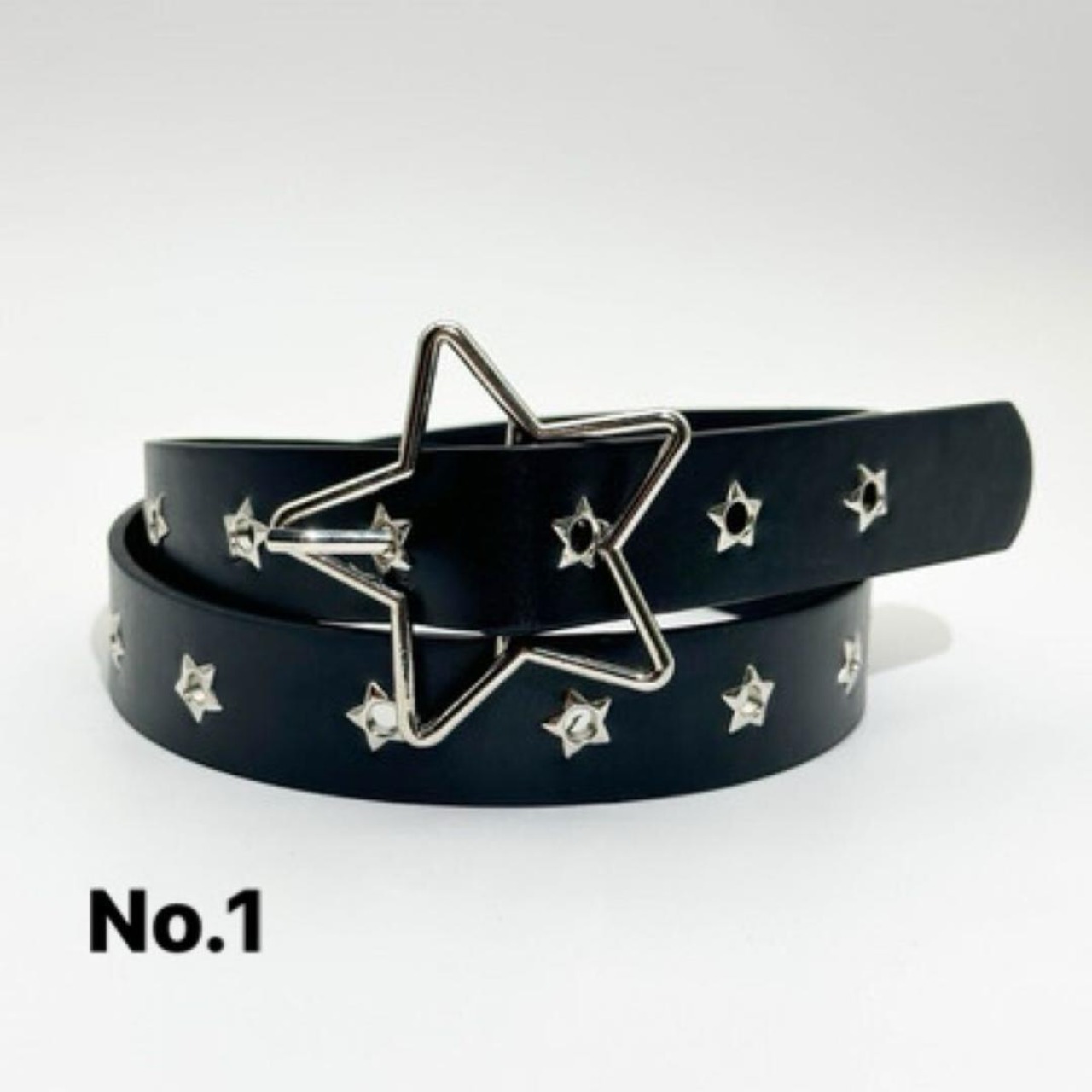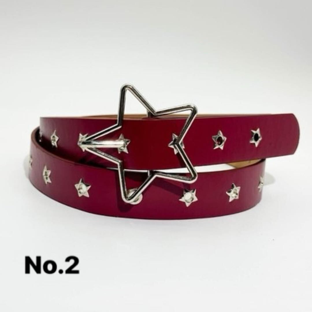 商品名:ベルト バックル 女性用ベルト レディース パンクスタイル スタッズ スター 穴あきベルト カジュアル