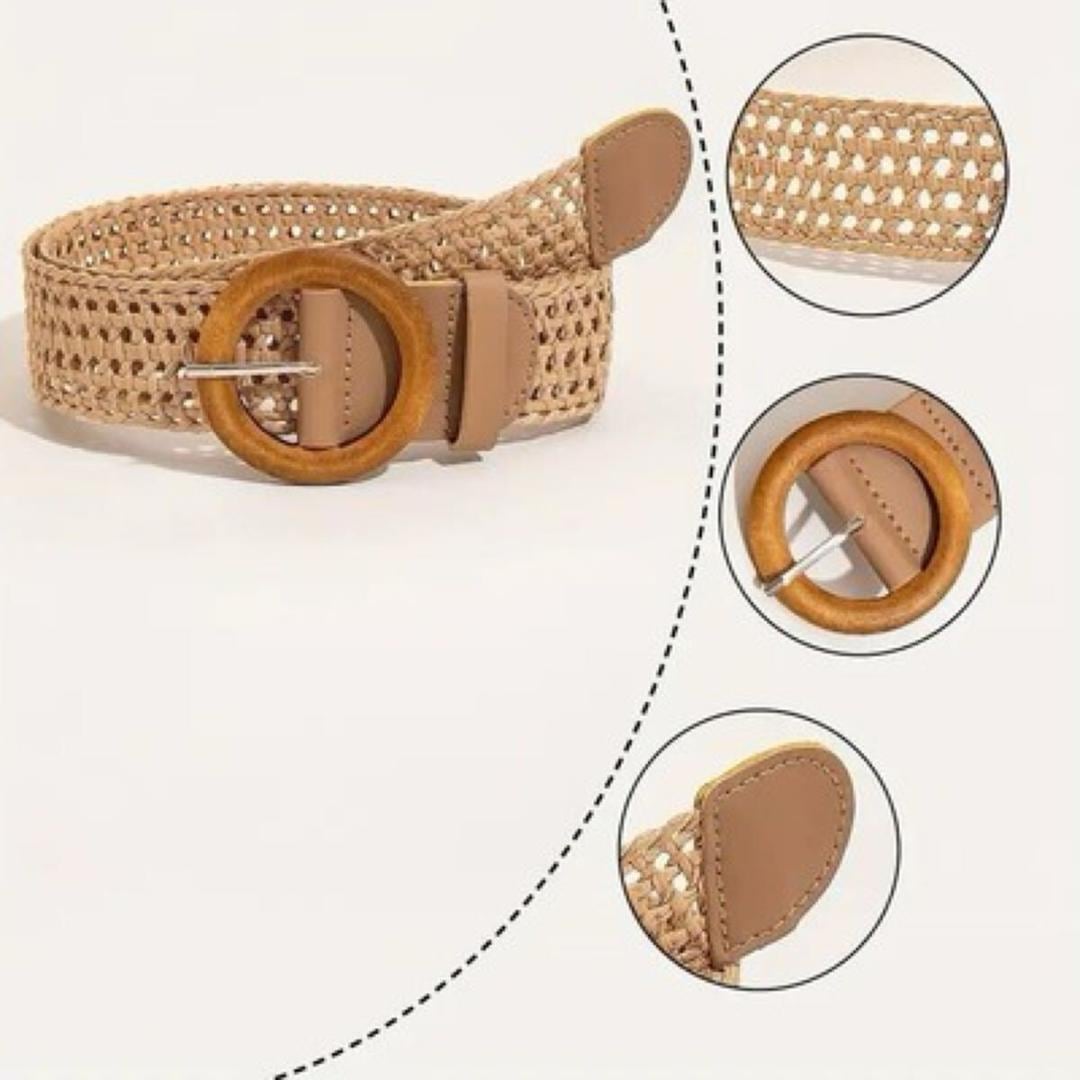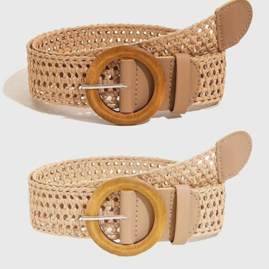 商品名:ベルト バックル 麦わら編み ボヘミアン カジュアル 女性用ベルト レディース