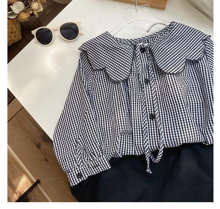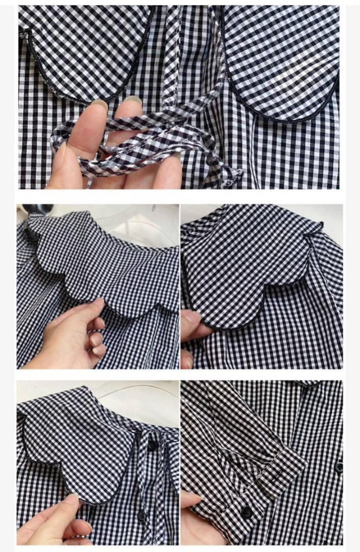 商品名:子供服 110cm 120㎝ 130㎝ キッズ ブラウス フリル襟ブラウス ギンガムチェック チェック柄 女の子 ガールズ