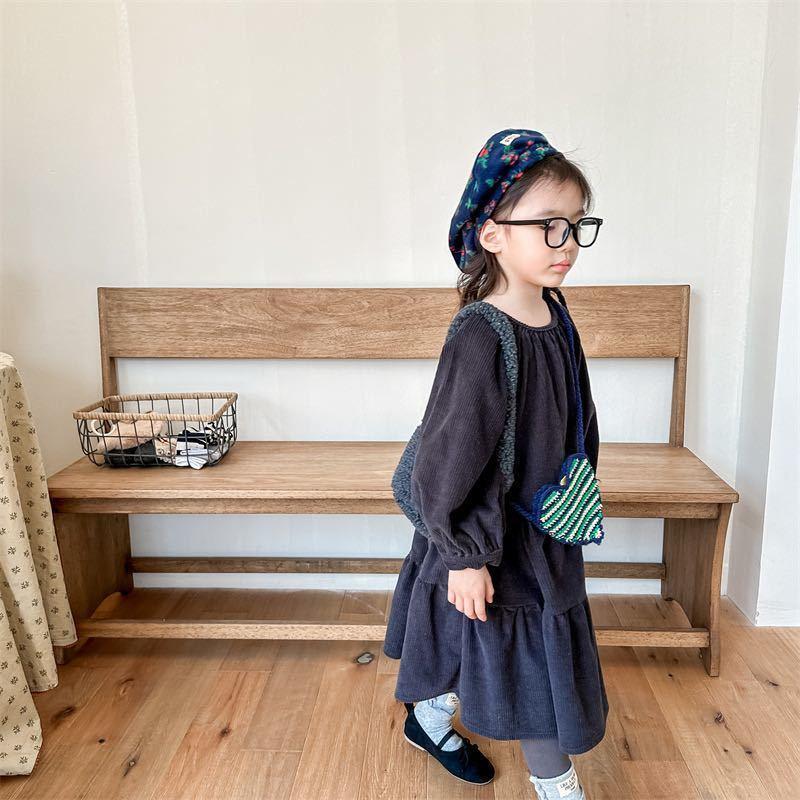 商品名:子供服 110cm 120㎝ 130㎝ キッズ ワンピース コーデュロイ コーデュロイワンピース 長袖 女の子 ガールズ