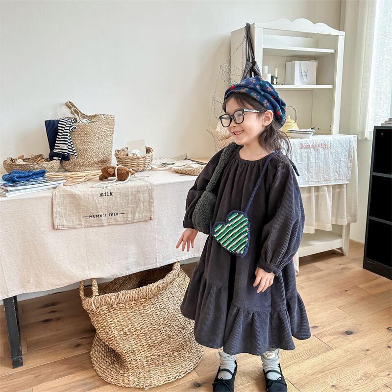 かわいらしい女の子のためのキッズワンピースが登場しました!柔らかな風合いと温かみのある素材感のコーデュロイ生地を使用しており、寒い季節にもぴったりです。長袖デザインで、さらに暖かさをキープできます。ベーシックなデザインなので、さまざまなコーディネートに合わせやすく、アウターなどとも相性抜群です。おしゃれな女の子にうれしいアイテムです!素材は肌触りの良い100%コットンで、お子様の肌にもやさしく、長時間の着用も快適です。丸洗い可能なのでお手入れも簡単です。キュートなデザインで、お子様のお洋服選びを楽しませてくれます。このワンピースでお子様のおしゃれな姿を演出してください!